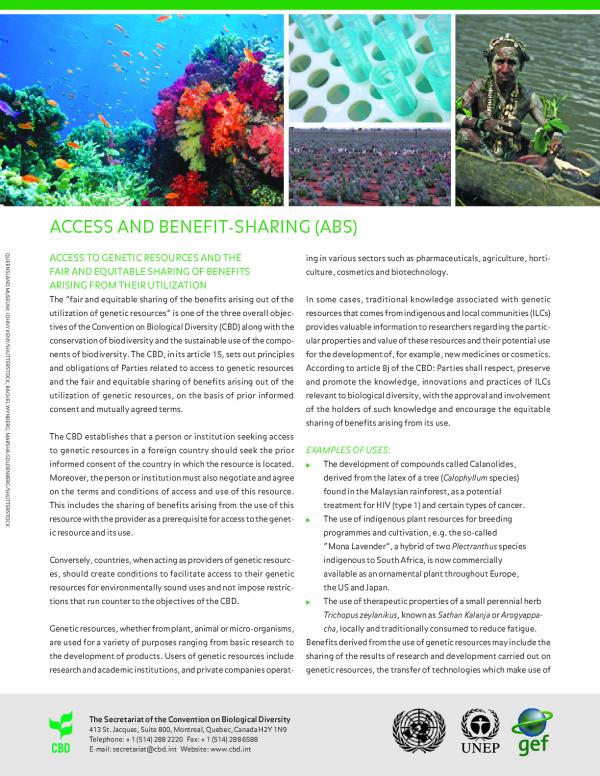 The fair and equitable sharing of the benefits arising out of the utilization of genetic resources is one of the three overall objectives of the Convention on biological diversity (CBD) along with the conservation of biodiversity and the sustainable use of the components of biodiversity.