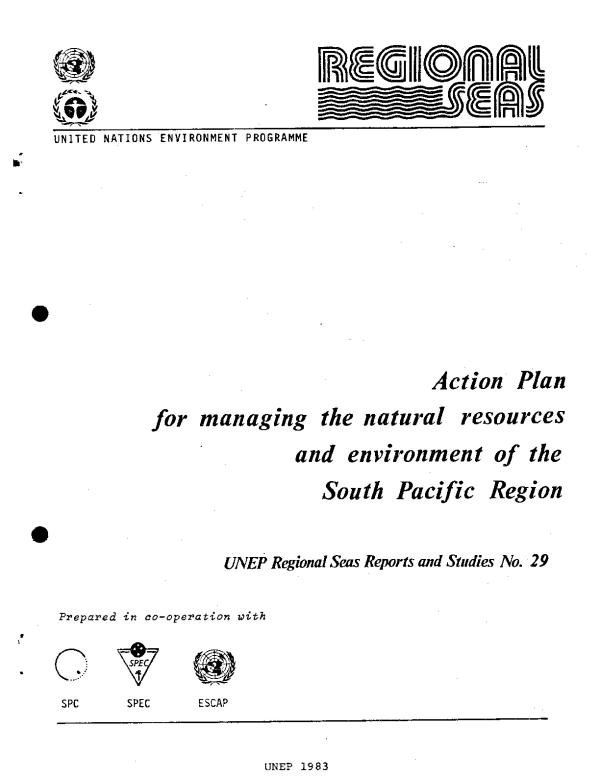 The South Pacific Region has been designated by the Governing Council of the United Nations Environment Programme as a "concentration area" in which UNEP, in close co-operation with ESCAP and other relevant components of the UN system, working through the established co-operative regional agencies - the South Pacific Commission (SPC) and the South Pacific Bureau for Economic Co-operation (SPEC) - will fulfil its catalytic role by fostering the design and adoption of a regional Action Plan by the countries of the region.