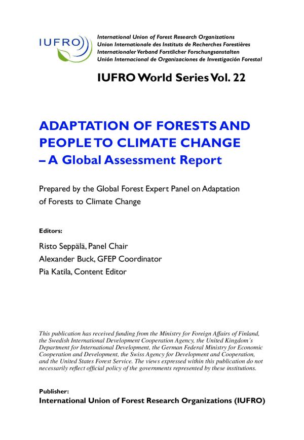 Greenhouse gas emissions are the main anthropogenic cause of current climate change. The magnitude of future change will be affected by the extent to which these emissions are reduced. Regardless of climate change mitigation activities implemented today or in the near future, however, historical emissions and inertia in the climate system mean that further climate changes are inevitable. Some effects of climate change are already noticeable and there is a need and opportunity to be better prepared for future change. Individuals, societies and institutions should be aware of the impacts that climate change is likely to have and should have strategies in place to adapt to them. Forest, and the goods and services they provide, are essential for human well-being. An assessment of the likely impacts of climate change on forests and forest-dependent people, therefore, is important for effective climate change adaptation. Such an assessment can also assist the development of options for avoiding the harmful effects of climate change and to take advantage of the opportunities provided by it.