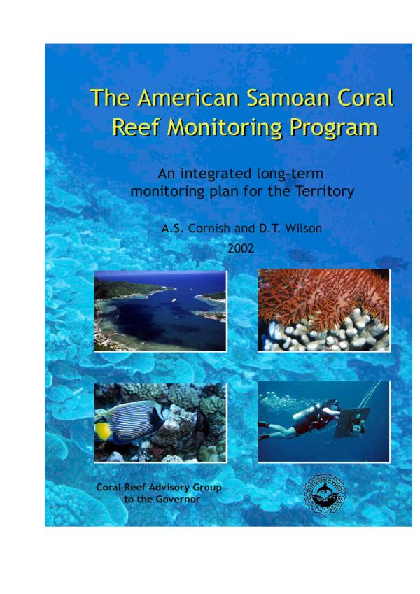 In March 2002, a workshop was held to build a comprehensive long-term monitoring plan for American Samoa by coordinating existing monitoring programs and identifying areas where additional monitoring/research was needed. The primary achievement of the plan is to identify and define core sites on the main islands of Tutuila and the Manua group in order to mesh existing programs monitoring corals, fishes and water quality. The priority for these and future monitoring programs will be to monitor these core sites, of which there are eight on Tutuila and six on each of the islands of Ofu/Olosega and Tau. The other major monitoring initiative is that of the multi-disciplinary Coral Reef Ecosystem Investigation surveys which will monitor alternative sites on Tutuila and the Manua group, as well as remote Swains Island and Rose Atoll. The monitoring plan acts as an in-depth guide to coral reef monitoring in American Samoa by detailing the goals and methodologies of these and other major monitoring programs, notably of the various Marine Protected Areas. Listing the workshop recommendations for additional monitoring/research needed for comprehensive long-term monitoring completes the plan.