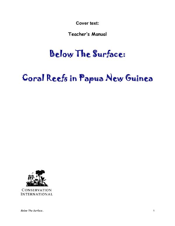 With fishes, sharks, dolphins, turtles, and brightly coloured corals, Papua New Guinea has one of the most striking marine environments in the world! Below the Surface is an environmental education (EE) manual developed specifically for teachers in PNG schools. It addresses key concerns of PNGs coastal communities, and encourages students to discover, cherish and protect their coastal environments. This manual will guide you step by step through a series of activities that pose a challenge to your students: how to conserve coral reefs for their future. Your students will do an art activity to explore biodiversity in Your Marine Scene, discover interconnectedness of the marine world in the Web of Life, play the Coral Reef Challenge, and follow-up with a community investigation in Community Connections. Finally, they will work collaboratively to design creative solutions to environmental conservation issues in Corals Reefs, Values & Beliefs, and will have the opportunity to design and implement a real-life conservation project in Reef Relief: Make it Happen!