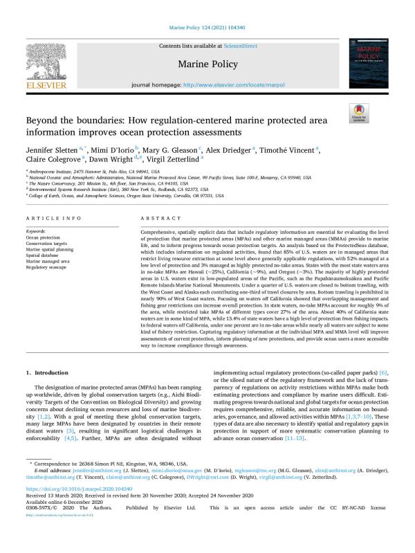 Comprehensive, spatially explicit data that include regulatory information are essential for evaluating the level of protection that marine protected areas (MPAs) and other marine managed areas (MMAs) provide to marine life, and to inform progress towards ocean protection targets