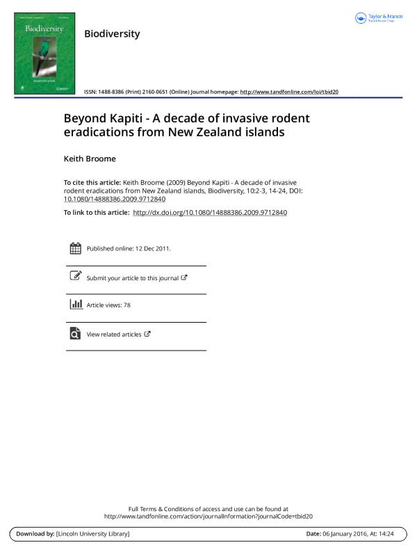 New Zealand, an archipelago of more than 2000 islands, has a terrestrial fauna especially depauperate in native land mammals. Kiore (Rattus exulans) was the first of four rodent species introduced by people. A project to eradicate invasive rats from Kapiti Island in 1996, represented a turning point in the technology, complexity and scale at which managers of natural heritage on New Zealand islands could operate. This paper includes case studies of some significant projects targeting rodents, sometimes with other introduced mammals, undertaken in the 12 years following Kapiti. Details of the methods, costs, results and outcomes are provided for Kapiti, Whenua Hou, Tuhua, Campbell, Raoul, Hauturu, Taukihepa, and Pomona islands, collectively representing a total of over 23,000 ha of habitat cleared of introduced mammals. Research and trials undertaken in the Kapiti project provided the basis for future environmental risk assessments, allowing other projects to focus on knowledge gaps. New trends in invasive species eradication in New Zealand include more challenging multi-species eradication projects, some of which are undertaken by self- funded community groups. To summarise the lessons of the New Zealand experience: a programmatic approach is recommended which will fit each eradication within a context or framework of goals for those islands; address biosecurity issues at the outset; build capability to attempt the most challenging and rewarding projects; facilitate investment in monitoring and manage expectations of stakeholders to ensure their ongoing support. Success breeds success but is never guaranteed. Record Created: 22-Aug-2018