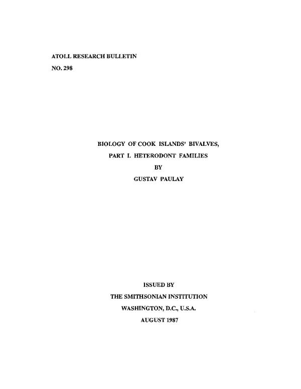 The purpose of the present study is to: 1/ list the presently known heterodont bivalve fauna of the Cook Islands, 2/ document the habitat specificity of the species involved in as much detail as possible, and 3/ investigate the correlation between a species' habitat specificity and its distribution among the various islands. While several studies have been done on the molluscan fauna of inner reef environments on Pacific islands (though bivalves are often neglected), there has been little work on the fauna of the outer reef slope. An important part of this study involved documenting the bivalve species living on this slope, and thus a large portion of my survey was carried out there.