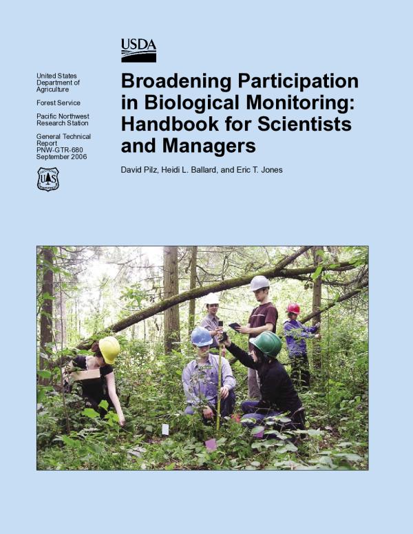 Participatory (collaborative, multiparty, citizen, volunteer) monitoring is a process that has been increasing in popularity and use in both developing and industrialized societies over the last several decades. It reflects the understanding that natural resource decisions are more effective and less controversial when stakeholders who have an interest in the results are involved in the process. An adequate number of such projects have now been organized, tried, and evaluated such that sufficient information exists to recommend a comprehensive approach to implementing such processes. This handbook was written for managers and scientists in the United States who are contemplating a participatory approach to monitoring biological resources, especially biodiversity. It is designed as a how-to manual with discussions of relevant topics, checklists of important considerations to address, and resources for further information. Worksheets for developing, implementing, and evaluating a monitoring plan are posted on a companion Web site. The subject matter is divided into 3 stages of a monitoring project encompassing a total of 22 topical modules. These modules can be used in any sequence on an ongoing basis. Stages and modules include (1) planningdocumentation, goals, indicators, collaboration, decisions, context, organization, participants, communication, incentives, design, and resources; (2) implementationtraining, safety, fieldwork, sampling, data, and quality; and (3) followthroughanalysis, reporting, evaluation, and celebrations. Collaboration always involves colearning, so documenting choices, plans, and activities with the Web site worksheets is integral to the manuals effectiveness.