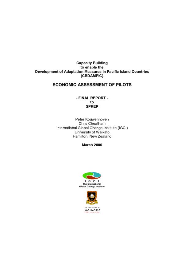 The "Capacity Building to enable the Development of Adaptation Measures in Pacific Island Countries" (CBDAMPIC) project is an adaptation to climate change project focusing on improving the sustainable livelihoods of Pacific Island people by increasing their adaptive capacity to climate-related risks. The project is implemented in four countries: Cook Islands, Samoa, Fiji and Vanuatu and was executed from January 2002 till March 2005.