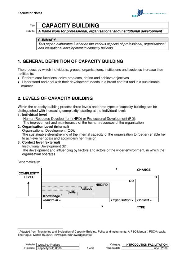 The process by which individuals, groups, organisations, institutions and societies increase their abilities to: Perform core functions, solve problems, define and achieve objectives Understand and deal with their development needs in a broad context and in a sustainable manner.