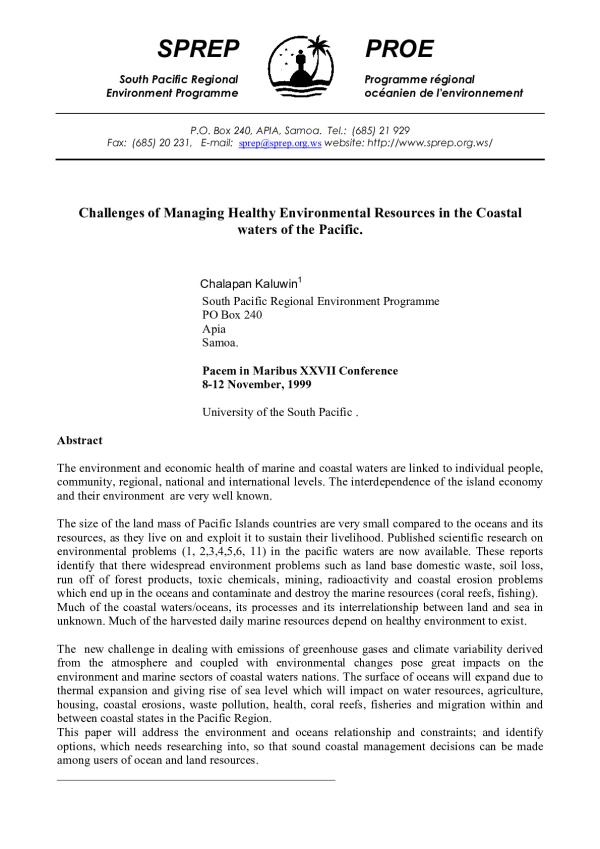 Coastal resource management - Islands of the Pacific