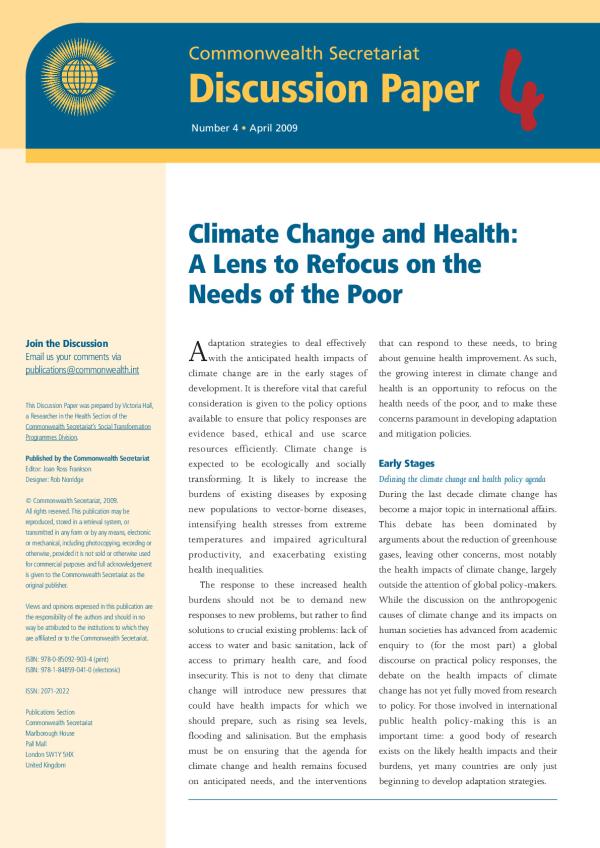 Adaptation strategies to deal effectively with the anticipated health impacts of climate change are in the early stages of development. It is therefore vital that careful consideration is given to the policy options available to ensure that policy responses are evidence based, ethical and use scarce resources efficiently. Climate change is expected to be ecologically and socially transforming. It is likely to increase the burdens of existing diseases by exposing new populations to vector-borne diseases, intensifying health stresses from extreme temperatures and impaired agricultural productivity, and exacerbating existing health inequalities
