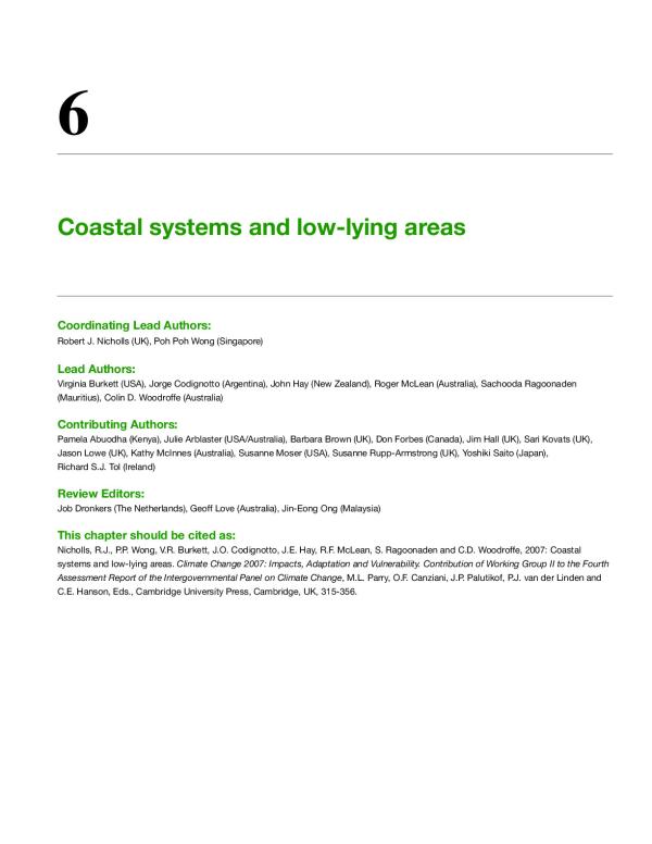 Since the IPCC Third Assessment Report (TAR), understanding of the implications of climate change for coa systems and low-lying areas (henceforth referred to as 'coasts has increased substantially and six important policy-relevant messages have emerged.