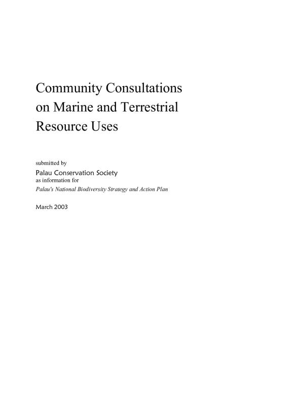 The overall objective of the community consultations is to gather basic key information on resource uses in Palau. One of the most direct means of collecting that information is to ask the resource users themselves. They are the people who have first-hand knowledge of the local uses and current state of many of the terrestrial and marine resources in the country.