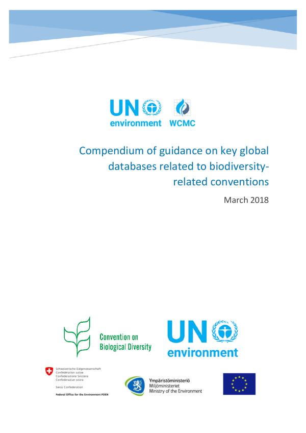 This compendium of guidance provides details of global-level databases relevant to the implementation of the biodiversity-related conventions. It responds to the activities and key actions set out in the table in Annex II of decision XIII/24 of the Conference of the Parties (COP) to the Convention on Biological Diversity (CBD). Specifically, activity B. 1: Collaboration in the management of information and knowledge and alignment in national data gathering, reporting, monitoring and indicators.
