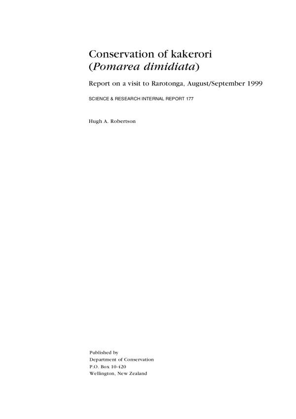 Since 1987, I have assisted the Cook Islands Conservation/Environment Service and, more recently, the Takitumu Conservation Area Project and the Avifauna Conservation Programme of the South Pacific Regional Environment Programme (SPREP) to plan and implement a recovery programme for the kakerori, a critically endangered forest bird endemic to Rarotonga. In 1989, the kakerori was one of the 10 rarest birds in the world, and classified as 'critically endangered' (Collar et al. 1994) with a population of just 29 birds. I calculated that there was a 50% chance of kakerori becoming extinct by 1998 unless nest predation by rats was significantly reduced. During each breeding season since 1989, rats have been poisoned in the 155 ha of forest occupied by kakerori (Robertson et al. 1998) and the effectiveness of this work has been measured by- recording breeding productivity (Saul et al. 1998), and by undertaking an annual census the following spring (Robertson 1998, 1999).