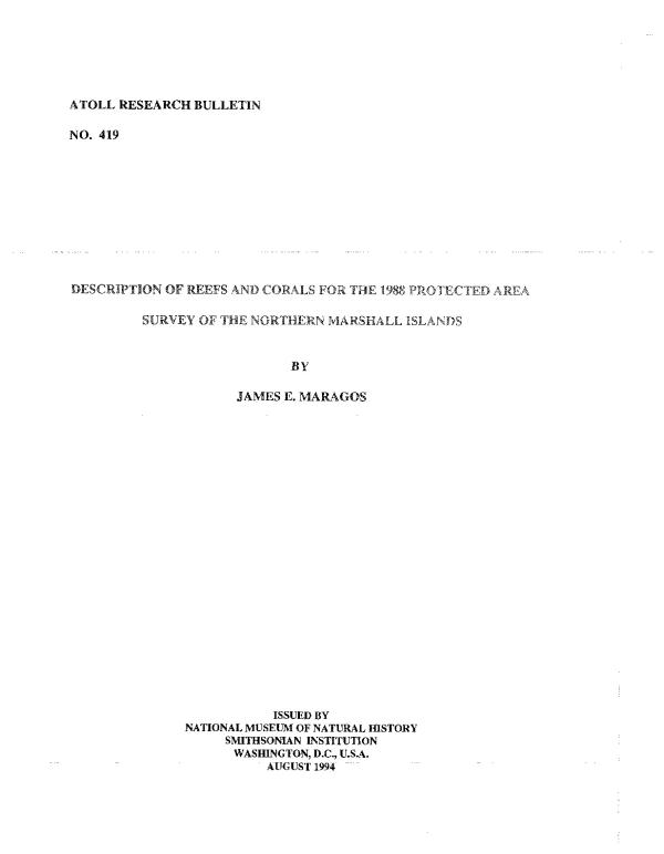 The Republic of the Marshall Islands requested a natural and cultural biodiversity survey of 6 northern atolls (Bok-ak, Pikaar, Toke, Wotto, Rondik, Adkup) and one reef island (Jemo) which was accomplished over 17 days in September 1988. This report covers the results of the survey of the reefs and corals during the expedition. Ninety-five marine sites were snorkeled and the shorelines of all island were surveyed during the expedition. A total of 168 species and 55 genera and subgenera of stony corals were reported including several new species and one new genus recorded (Polyphyllia) for the Marshalls.