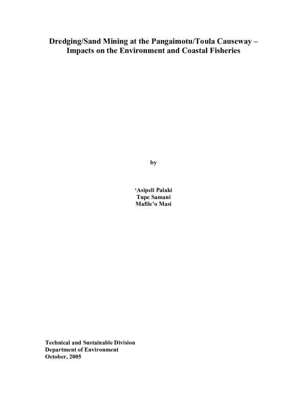 Sand mining - Dredging - Impacts - Coastal fisheries - Tonga