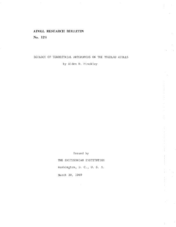 Terrestrial Arthropods - Ecology - Tokelau