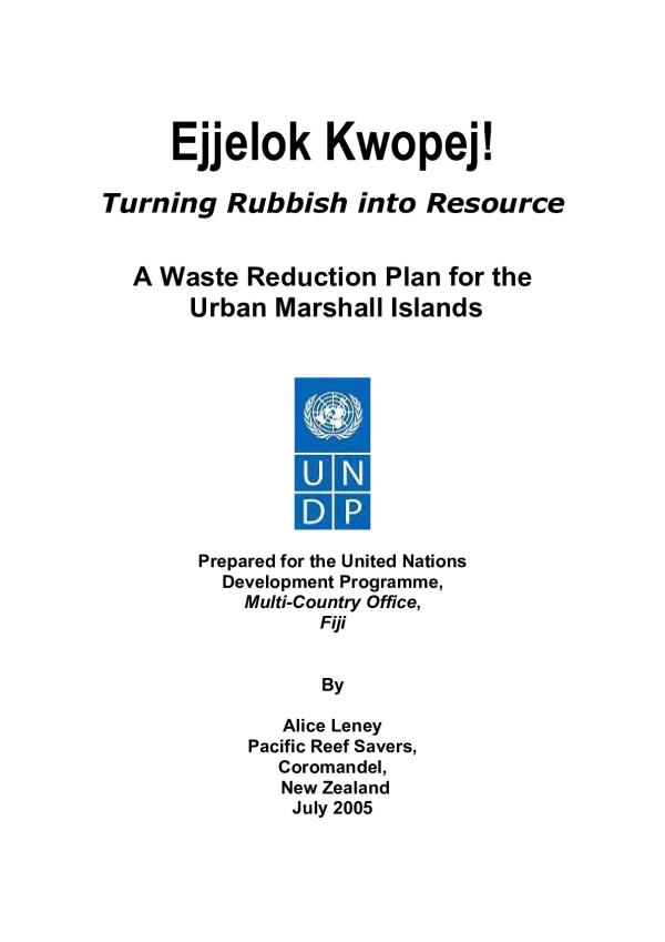 Feasability Study Draft Ejjelok Kwopej! Turning Rubbish into Resource A Waste Reduction Plan for the Urban Marshall Islands Prepared for the United Nations Development Programme, Multi-Country Office, Fiji By Alice Leney Pacific Reef Savers, Coromandel, New Zealand July 2005 Table Of Contents Preface: A Note on Report Structureâ¦â¦â¦â¦â¦â¦â¦â¦â¦â¦â¦â¦â¦â¦â¦. 5 1. Summaryâ¦â¦â¦â¦â¦â¦â¦â¦â¦â¦â¦â¦â¦â¦â¦â¦â¦â¦â¦â¦â¦â¦â¦â¦â¦â¦. .. 6 1.2 Purpose and Scope of this Studyâ¦â¦â¦â¦â¦â¦â¦â¦.. â¦â¦â¦â¦â¦.. 7 1.3 Objectives of this Studyâ¦â¦â¦â¦â¦â¦â¦â¦â¦â¦â¦â¦â¦â¦â¦â¦â¦â¦. 7 1.4 Research Requiredâ¦â¦â¦â¦â¦â¦â¦â¦â¦â¦â¦â¦â¦â¦â¦â¦â¦â¦â¦â¦. 7 2. The Recycling Systemâ¦â¦â¦â¦â¦â¦â¦â¦â¦â¦â¦â¦â¦â¦â¦â¦â¦â¦â¦â¦â¦ 9 2.1 What is a Container Deposit System?â¦â¦â¦â¦â¦â¦â¦â¦â¦â¦â¦â¦. 9 2.2 Advantages of CDL systemsâ¦â¦â¦â¦â¦â¦â¦â¦â¦â¦â¦â¦â