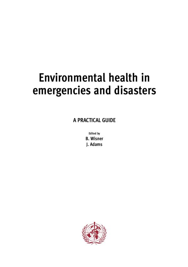 The WHO Guide to sanitation in natural disasters (Assar, 1971) summarized the essential aspects of environmental health management in disasters. These included the provision of emergency water and sanitation services; the burial or cremation of the dead; vector and pest control; food hygiene; and the assessment of the danger of epidemics following emergencies and disasters, etc. Thirty years later these aspects remain essential, though the needs, challenges and opportunities are greater. The present book deals not only with emergency response, but also with measures designed to reduce the impact of disasters on environmental health infrastructure, such as water supply and sanitation facilities. It also aims to strengthen the ability of people to withstand the disruption of their accustomed infrastructure and systems for environmental health (e.g. shelter, water supply, sanitation, vector control etc.) and to recover rapidly.