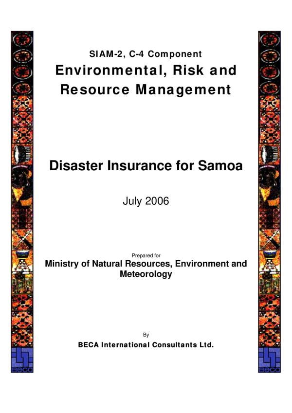 The concept of a regional catastrophe insurance scheme for the Pacific was first aired at the third Pacific Island Forum Economic Ministers Meeting (FEMM3) in Samoa in 1999. Its inspiration was the World Bank study on risk transfer options for another group of Small Island Developing States, those in the Caribbean.