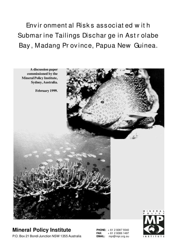 Highlands Pacific Limited is currently seeking finance for the development of a Nickel-Cobalt mine in Madang Province. Papua New Guinea. The mine will be located near the Ramu River, with processing facilities at Basamuk Bay on the Rai Coast. Basainuk Bay is a small embayment of the larger Astrolabe Bay. Highlands Pacific plans to dispose of mill tailings through a submarine outfall into Astrolabe Bay. Oceanographic conditions in Astrolabe Bay make this practise inadvisable if consideration is given to the ecological health of the Madang region.