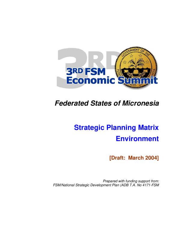 Recognizing the critical importance of the FSM's natural environment to the health and prosperity of this and future generations of Micronesians, the Environment Sector shall support the protection of the Nation's environment and achieve sustainable development of its natural resources. These efforts include the development, adoption and enforcement of policies, laws, and regulations in pursuit of the above-stated goals; the reduction and prevention of environmental degradation and all forms of pollution; adaptation to climate change: the protection of biological diversity, including assurance of adequate legal and international treaty safeguards relating to the protection of botanical and other agro-ecological property (including traditional knowledge and practices) belonging to the Federated States of Micronesia; the establishment and management of conservation areas; environmental infrastructure planning, design construction, and operation; interaction and cooperation with private sectors; and promotion of increased involvement of citizens and traditional leaders of the Federated States of Micronesia in the process of conserving their country's natural resources.