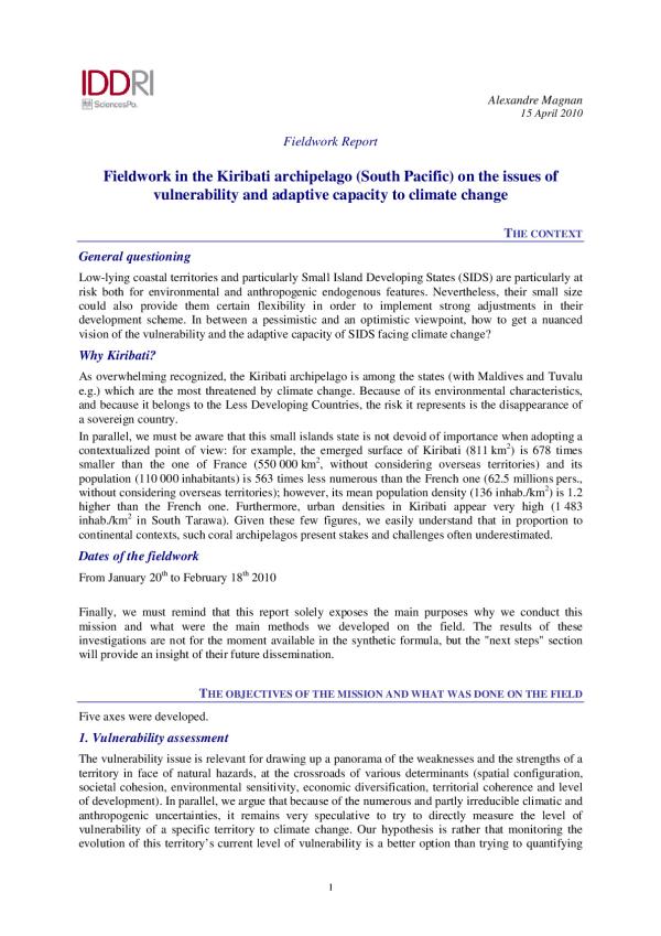Climate change - Vulnerability - Kiribati
