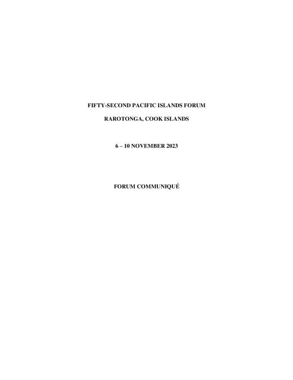 Leaders expressed their deep appreciation to the Honourable Mark Brown, Prime Minister of the Cook Islands, and the Government and people of the Cook Islands, for the warm hospitality extended to their delegations. Leaders commended the preparations and facilitation of the 52nd Pacific Islands Forum, which enabled Leaders and participants to hold constructive discussions and contributed to the overall success of the 52nd Pacific Islands Forum.
