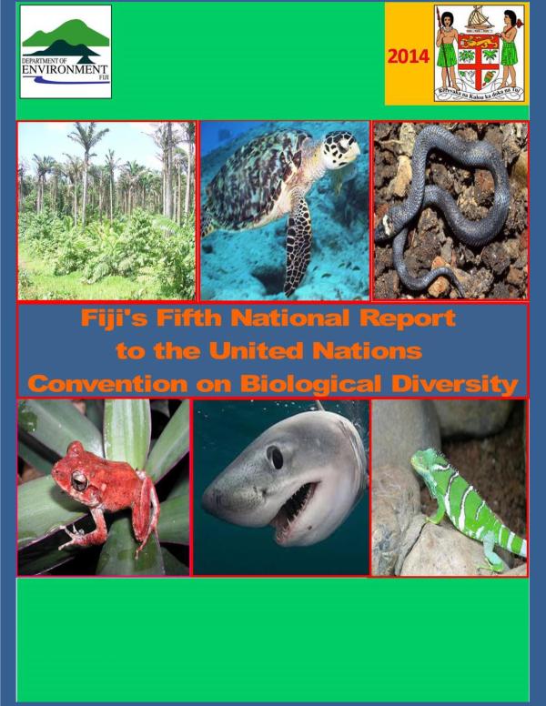 This report has been prepared by the Republic of the Fiji Islands for the Convention on Biological Diversity (CBD) as required by Article 6 of the Convention. This fifth national report covers the period from 2010-2013 and aims to: · Analyze the status, trends and threats and implications for human well-being. · Outline the national biodiversity strategy and action plan (NBSAP), its implementation, and the mainstreaming of biodiversity. · Assess the progress towards the 2015 and 2020 Aichi Biodiversity Targets and contributions to the relevant 2015 Targets of the Millennium Development Goals. Included and attached to the reports are appendix documents which are relevant to the report.