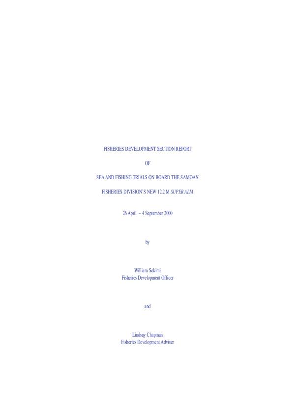 The Samoan time longline fishery has developed rapidly over the last five years, with the main vessel used being the alia catamaran. These vessels target albacore tuna, which is landed locally, fiozen and exported to the two canneries in neighbouring American Samoa. An increasing component of the catch from the Samoan longline fishery is the catch of higher-value species, such as larger yellowfin and big- eye tunas. These fish are landed to processors, who export them fresh to overseas markets.