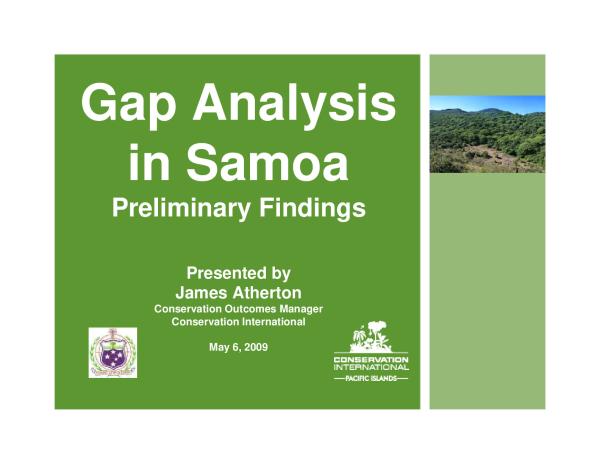 A gap analysis is an analysis of how effective our current PA network is in conserving our biodiversity Essentially the gap analysis is an overlay of the ideal set of conservation areas on the current PA network to see where the gaps are Why do a gap analysis? I. To promote the strategic expansion of the existing PA network in order to meet agreed NBSAP and CBD commitments II. To strengthen and consolidate the management of existing PA networks III. To fill in the information gaps required to inform i) and ii).