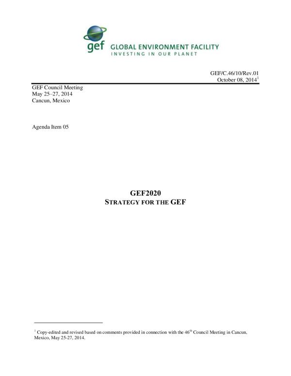 This section briefly reviews key global environmental trends and the evolving landscape of environmental finance. It also summarizes the Global Environment Facilitys (GEFs) main capabilities and strengths that can be built on to position the GEF for 2020 and beyond.