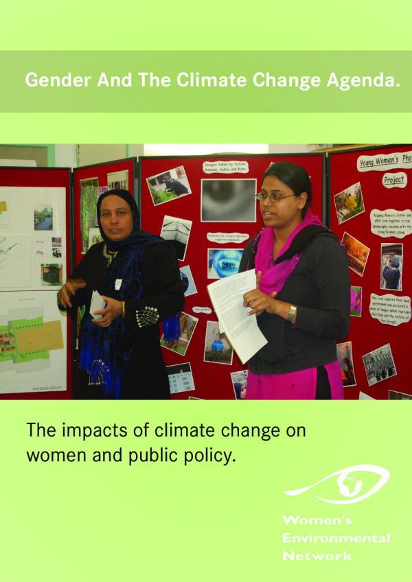 1 The impacts of climate change on women and public policy. Gender And The Climate Change Agenda.22 3 GENDER AND THE CLIMATE CHANGE AGENDA The impacts of climate change on women and public policy Womenâs Environmental Network © 2010 Christine Haigh & Bernadette Vallely for Womenâs Environmental Network Acknowledgements Thanks to the following for their valuable help with this report, including providing information for the case studies, photographs and comments on earlier versions of the manuscript: Rachel Berger (Practical Action) Sarah Blakemore (Oxfam GB) Monika Bricke (GenderCC) Amber Bronnum (Center for Women and Democracy) Professor Susan Buckingham (Brunel University) Jo Budd (Womenâs Environmental Network) Jane Cacouris (Tearfund) Maureen Fordham (Gender Disaster Network) Biba Hartigan Lindsey Hayes (Royal College of Nursing) Minu Hemmati (GenderCC) Beth Henriette (IIED) Tanjir Hossain (ActionAid) Tim Jones (World Development Movement) Helen Kinsella (Womenâs Environmental Network)