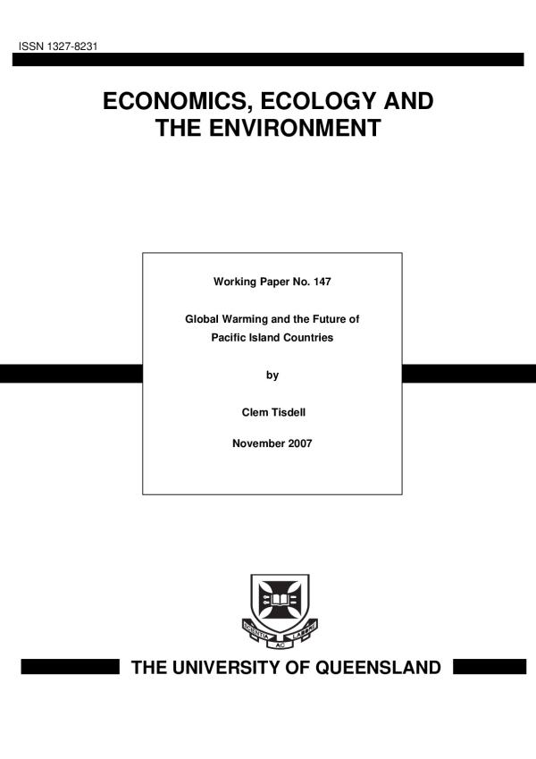 This article briefly outlines the cause of global warming, its trends and consequences as indicated by the International Panel on Climate Change. Sea-level rise is one consequence of particular concern to Pacific island states. It also reviews the views of economists about connections between economic growth and global warming. Whereas the majority of economists did not foresee a conflict between economic growth and global warming, the possibility of such a conflict is now more widely recognized following the Stem Report. International efforts, such as through the Kyoto Protocol, to reduce greenhouse gas emissions and their atmospheric concentration are discussed and prospects for post-Kyoto policies are considered. It is predicted that a significant reduction in global greenhouse gas emissions is unlikely to be achieved in the foreseeable future due to conflicting national interest (a prisoners' dilemma problem) and because is will take time to develop new technologies which will reduce greenhouse gas emissions. However, payment for greenhouse gas emissions (for example, via tradable permits) will accelerate desirable technological advance. Both international political action and efforts to develop and use technologies that lower greenhouse gas emissions need to be pursued. Given current and likely increases in greenhouse gas emissions, continuing global warming in this century appears to be inevitable and consequently Pacific island states will be adversely affected by sea-level rise and climate change. How they will be affected and to what extent is discussed together with their ability to cope with the emerging problem Ways are also examined of addressing the consequences for Pacific island states of global warming.