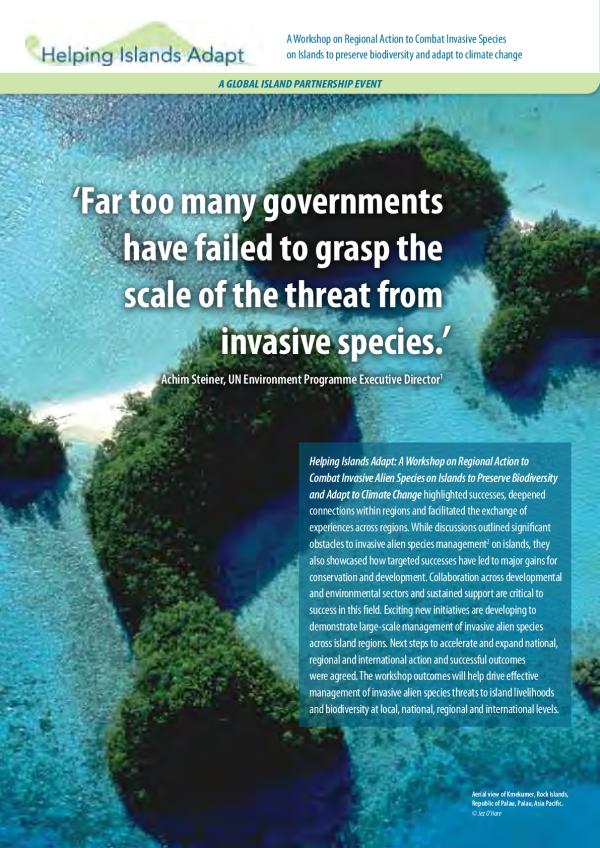 A Workshop on Regional Action to Combat Invasive Alien Species on Islands to Preserve Biodiversity and Adapt to Climate Change highlighted successes, deepened connections within regions and facilitated the exchange of experiences across regions.While discussions outlined significant obstacles to invasive alien species management2 on islands, they also showcased how targeted successes have led to major gains for conservation and development.Collaboration across developmental and environmental sectors and sustained support are critical to success in this field.Exciting new initiatives are developing to demonstrate large-scale management of invasive alien species across island regions. Next steps to accelerate and expand national, regional and international action and successful outcomes were agreed.The workshop outcomes will help drive effective management of invasive alien species threats to island livelihoods and biodiversity at local, national, regional and international levels.