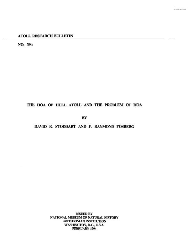 This paper describes the channels known as hoa which are characteristic of atoll land rims and of some islands on barrier reefs, where they often dissect previously more continuous reef-top sediment accumulations and conglomerate platforms. They are especially common in the central Pacific, and are particularly well developed in some atolls of the Tuamotu Archipelago and on some of the Society Islands. Published hypotheses accounting for the origin and development of hoa of different kinds are outlined. Contemporary hoa on the north side of Hull Atoll in the Phoenix Islands are described and surveyed, as are older, probably Holocene hoa, here termed 'paleohoa', on the same atoll. Regional and local distributions of hoa and paleohoa and differences in hoa morphology are used to assess theories of hoa formation. Both hoa and paleohoa are attributed to hurricane activity, and the presence of paleohoa may thus give an indication of the distribution of hurricanes in the Holocene.