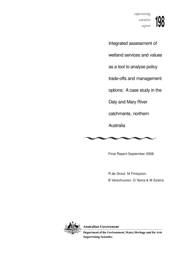 In this report we present the results of a study carried out between May 2004 and May 2005 as a contribution to the Tropical Rivers Inventory and Assessment Project (TRIAP) of Australia's Tropical Rivers Program. The aim was to provide a framework for the analysis of the ecosystem services provided by the wetland and riverine ecosystems of northern Australia. The analyses drew heavily on the conceptual framework provided by the Millennium Ecosystem Assessment (MA) where ecosystem services were defined as 'the benefits people obtain from ecosystems'. These benefits include: provisioning services such as food and water; regulating services such as flood and disease control; cultural services such as spiritual, recreational, and cultural benefits; and supporting services such as nutrient cycling that maintain the conditions for life on earth. The term 'ecosystem services' is now broadly used to encompass what can also be referred to as ecosystem goods and services and/or ecosystem functions and, at times, also environmental services. For the purposes of this report - given that the study was undertaken using the recognised 'function analysis framework' - the terms ecosystem services and functions are considered to be interchangeable unless a distinction is made otherwise.