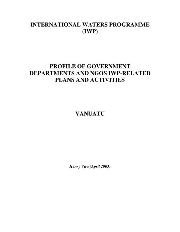 This report is the product of a short term consultancy to review the draft Vanuatu Country report for the Implementation of International Waters Programme (IWP) to ensure that the information in the report are well represented of the views and experiences of the government and NGOs described. The draft country report was put together following a visit by SPREP employees to Vanuatu in 2001. This report attempts to provide information where there is yet gaps in the 2001 report on activities related to IWP focal areas; sectors administrative responsibilities; their past, current and planned activities; and their environmental related communication that are related to the IWP interests. The 4 principal areas identified in IWP are: marine protected areas, sustainable fisheries, protection and conservation of freshwater and the management of community- based waste.