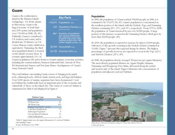 Guam is the southernmost island in the Mariana Islands Archipelago. Of all the islands in Micronesia, Guam is the largest in terms of both land area (543 sq km) and population (over 176,000 in 2008) (26,49). Politically, Guam is considered a U.S. territory and county and is divided into 19 districts (or US. Census Bureau county subdivision equivalents). Tamuning, the third most populated district, is located on the island's western shore. It contains approximately 11% of Guam's population (49) and is home to Guam's primary economic activities, including the tourism industry, Harmon Industrial Park, Antonio B. Won Pat International Airport, and Fort Juan Munaheadquarters of Guam's Army National Guard.