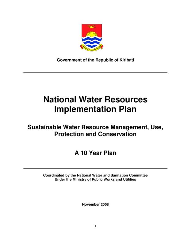 Water is a vital, strategic resource that underpins human well-being, health, cultural and spiritual values, sustains environments and provides development opportunities. The nature of coral islands and atolls, demographic trends, the widely dispersed villages, crowded urban centres, climatic variation and change and the impacts of human activities all combine to impose significant risks to water supplies for island communities and their environments. The challenges faced in the water and sanitation sector in Kiribati are amongst the most difficult in the world.