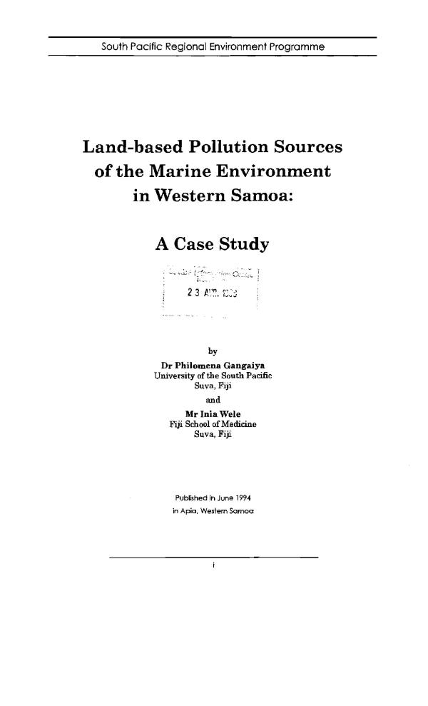 Pollution - Environmental aspects - Western Samoa