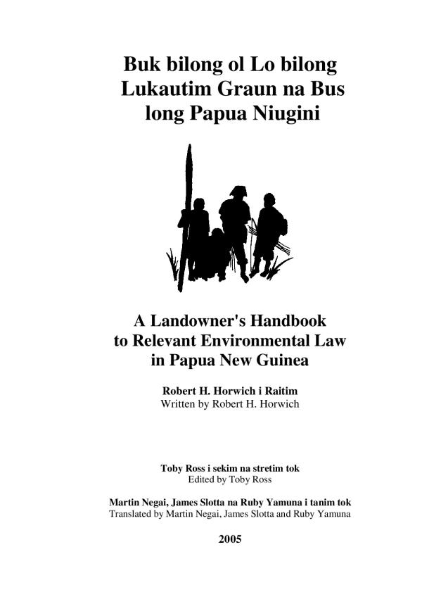 Mi laik tok hamamas na tenkyu long Martin Negai long skruim na kliaim toktok istap long dispela buk. Wankain mi laik tok tenkyu long Toby Ross long stretim na edim samplea tok istap long dispela buk. Na tu Dr. Lisa Dabek i saplaim sampela tingting na mi laik tok tenk yu long en. Mi laik tok tenkyu tru long Ruby Yamuna, James Slotta, James Qasarike, na Damlap Qasarike. Ol i givim bikpela helpim long mipela na tanim tok i stap long dispela buk i go long Tok Pisin. Mi laik tok tenkyu long Damein Ase bilong Senta bilong Lo bilong Envairamen na ol Raits bilong gras-Ruts (CELCOR) na Almah Tararia na Paula Nato bilong Senta bilong Lo bilong Envairamen (ELC), long strongim mi long dispela wok na halivim mi long kamapim dispela buk. Na tu mi laik tok tenkyu long John Chitoa na Yat Paol bilong Bismak-Ramu long soim mi ol kontrak bilong lukautim na tambuim bus na graun, na tu mi laik tok tenkyu long ol papagraun bilong Tokain long tok klia long mi long as tingting bilong dispela kontrak. Las tru mi laik tok tenkyu long Ed Mayer na Sue Brown bilong Netsa Kansevensi long wok bilong ol long kamapim sampela tingting long wei we Lokal Leval Gavman iken lukautim ol hap busgraun long en.