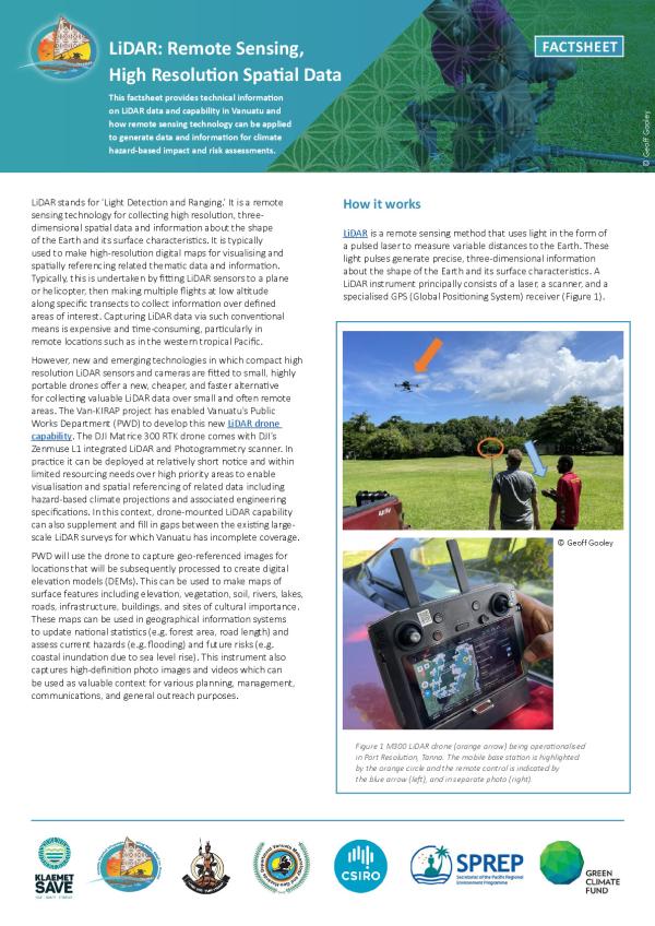 This factsheet provides technical information on LiDAR data and capability in Vanuatu and how remote sensing technology can be applied to generate data and information for climate hazard-based impact and risk assessments