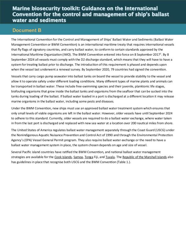 Marine biosecurity toolkit: Guidance on ballast water and sediments management