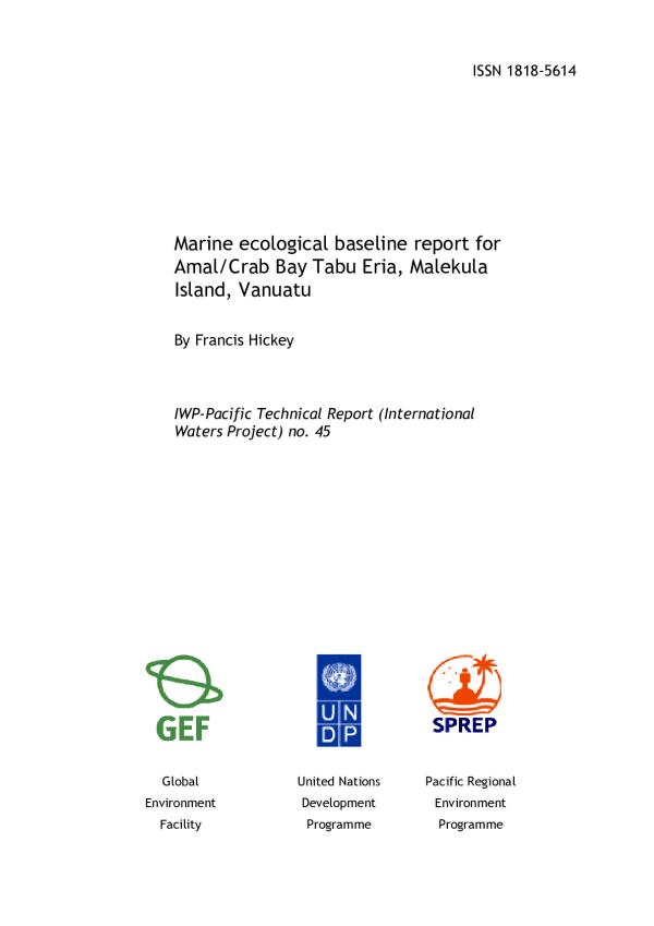 An ecological baseline survey of the Amal/Crab Bay Tabu Eria (AKTE) was performed between November 2004 and May 2005. Resources were surveyed with the assistance of Community Facilitators (CFs), and under the direction of the AKTE Management Committee (MC); surveyed resources included land crabs, terrestrial flora, mangroves, avifauna,mammals, finfish, shellfish, turtles and dugongs. Available literature regarding these resources and their distrubution within Vanuatu was reviewed and summarised, and traditional and local knowledge documented, including vernacular names for resources. The impacts of tectonic uplifting affecting mangrove zonation and nearshore reefs was also documented.
