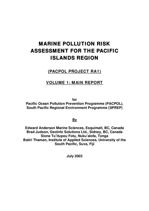 Available online|for Pacific Ocean Pollution Prevention Programme (PACPOL), South Pacific Regional Environment Programme (SPREP)|Contact Manager - Mr. Sefanaia Nawadra