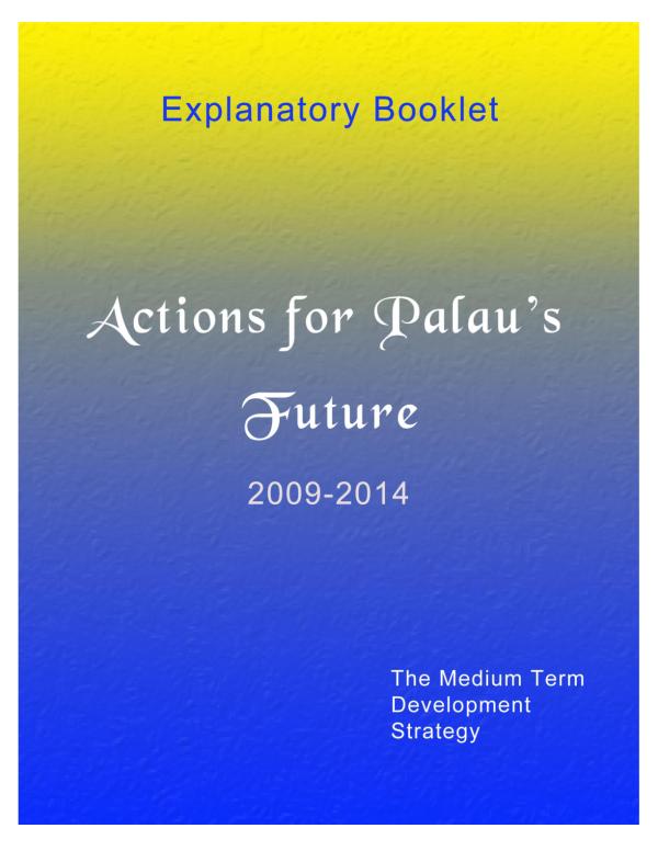 Pacific Studies Series Tata 2 This Booklet and the Medium Term Development Strategy â Actions for Palauâs Future â were prepared by the Government of Palau with the assistance of the Facility for Economic and Infrastructure Management and the support of the Asian Development Bank 3 CONTENTS Page 1 The Medium Term Development Strategy 5 1.1 Role and Context of the Medium Term Development Strategy 5 1.2 Link to the National Master Development Plan â Palau 2020 5 1.3 Role of This Explanatory Booklet 6 2 Overall Goal, Strategic Priorities and Overarching Strategies 7 2.1 Overall Goal 7 2.2 Strategic Priorities 7 2.3 Overarching Strategies 8 2.4 Policy and Project Priorities 8 2.5 Expected Outcomes 9 3 Economic Policies and Institutions 10 3.1 Approach and Issues 10 3.2 Goal, Strategies and Actions 11 3.3 Expected Outcomes 14 4 Reform of Government and Public Enterprises 15 4.1 Approach and Issues 15 4.2 Goal, Strategies and Actions â Overarching Action Plan