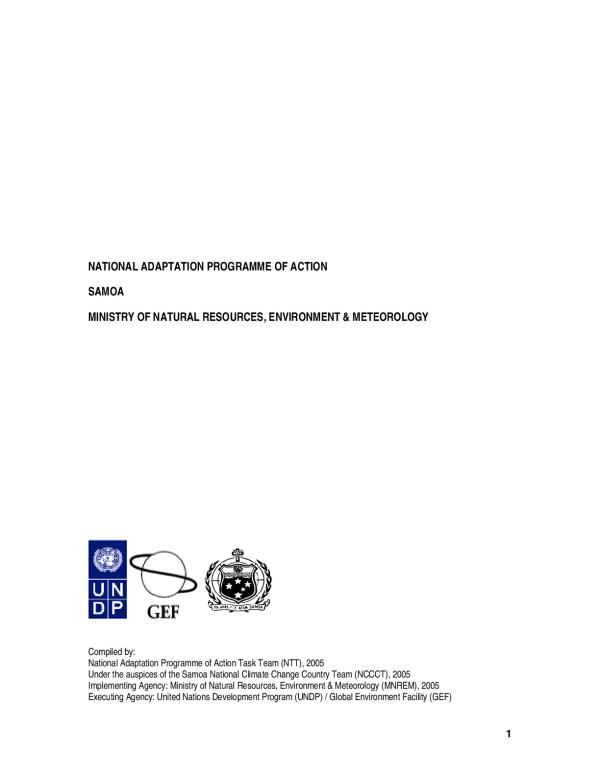 compiled by: National Adaptation Programme of Action Task Team (NTT) 2005, under the auspices of the Samoa's NCCCT 2005, implementing agency - MNREM2005 executing agency - UNDP / GEF|Available online|one copy only|The United Nations Framework Convention on Climate Change (UNFCCC,1992) is concerned with global warming and the consequent rise in sea levels that may result in the flooding of coastal areas, and submerging islands, which could adversely affect coastal communities. The treaty aims at reducing emissions of greenhouse gas in order to combat global warming. Although the treaty as originally framed set no mandatory limits on greenhouse gas emissions for individual nations and contained no enforcement provisions; it did include provisions for updates (called "protocols") that would set mandatory emission limits. The principal update is the Kyoto Protocol
