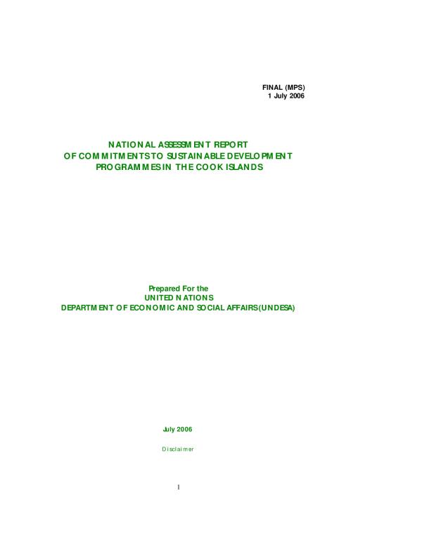 Natural resources - Assessment - Cook Islands