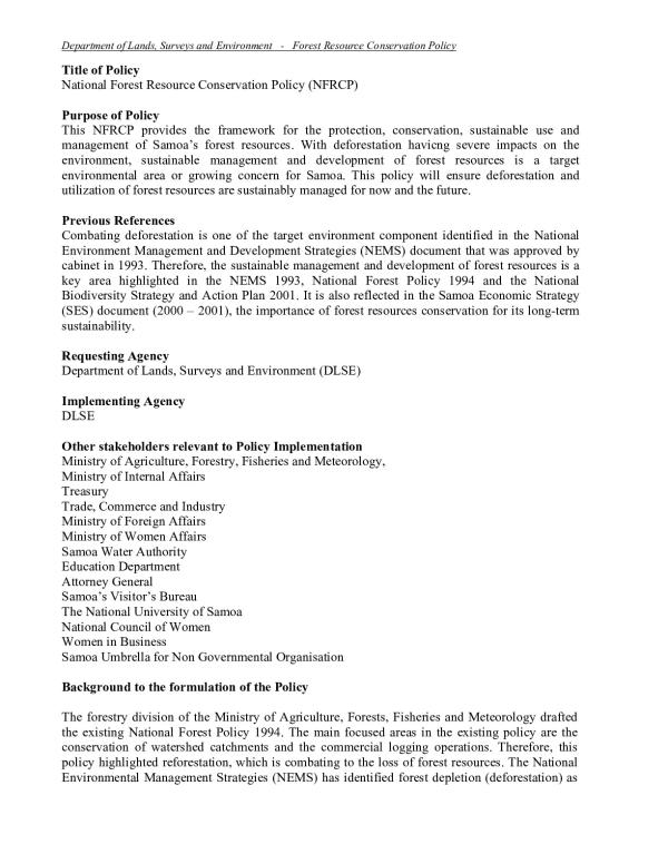 Department of Lands, Surveys and Environment - Forest Resource Conservation Policy
