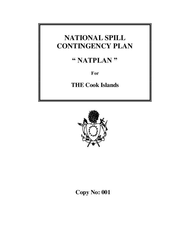The Government of the Cook Islands has developed this National Spill Contingency Plan (NATPLAN) as part of its commitment to protecting our valuable natural resources and environment from the threat of pollution incidents. NATPLAN has been developed to reflect the essential steps necessary to initiate, conduct and terminate an emergency spill response on, or into the navigable waters of the Cook Islands, on the adjoining shorelines, the waters of the contiguous zone or into waters of the exclusive economic zone.